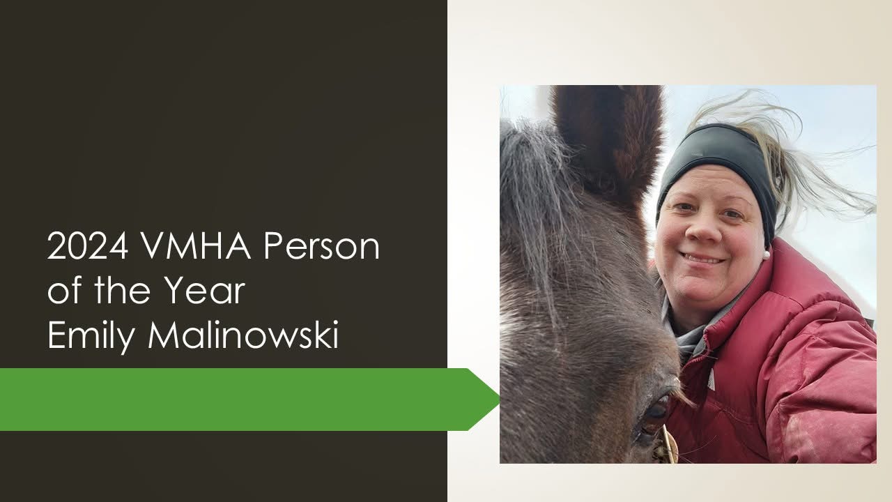 The VMHA Person of the Year Award was created in 1975 to honor the VMHA Man and Woman who had demonstrated dedication above and beyond to VMHA and the Morgan Horse breed through promotion and volunteerism. Originally named the VMHA Man of the Year and VMHA Woman of the Year Award, it became known as the Person of the Year Award in 1991.